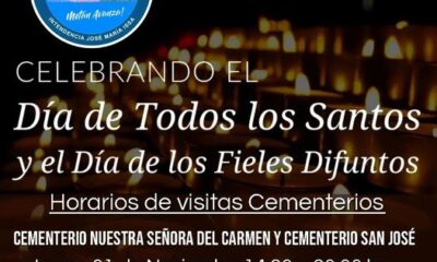 Hoy 2 de Noviembre los cementerios San José y Nuestra Señora del Carmen permanecerán abiertos de 7.00 a 20.00hs. Las misas se realizarán a horas 8:00...