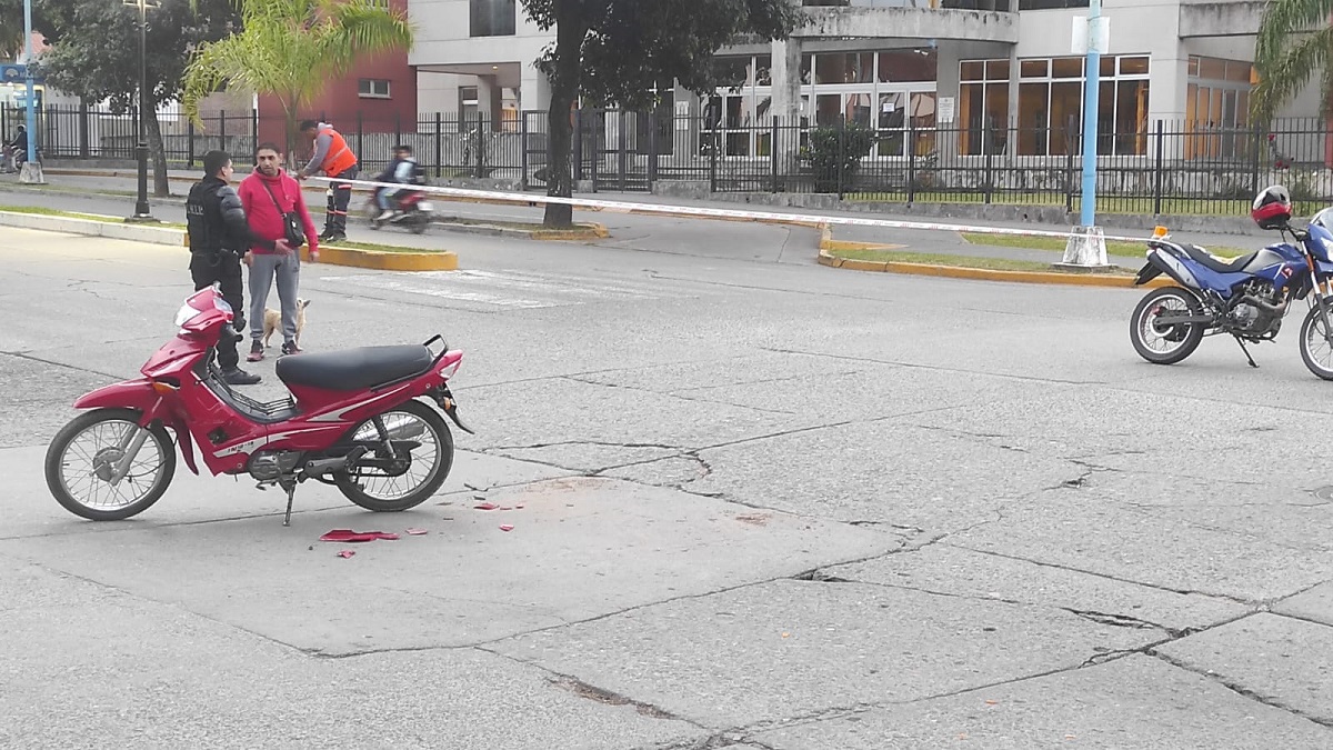 Una motociclista resultó herida tras colisionar con un automóvil en una esquina transitada. El hecho activó un amplio operativo policial y generó demoras vehiculares.