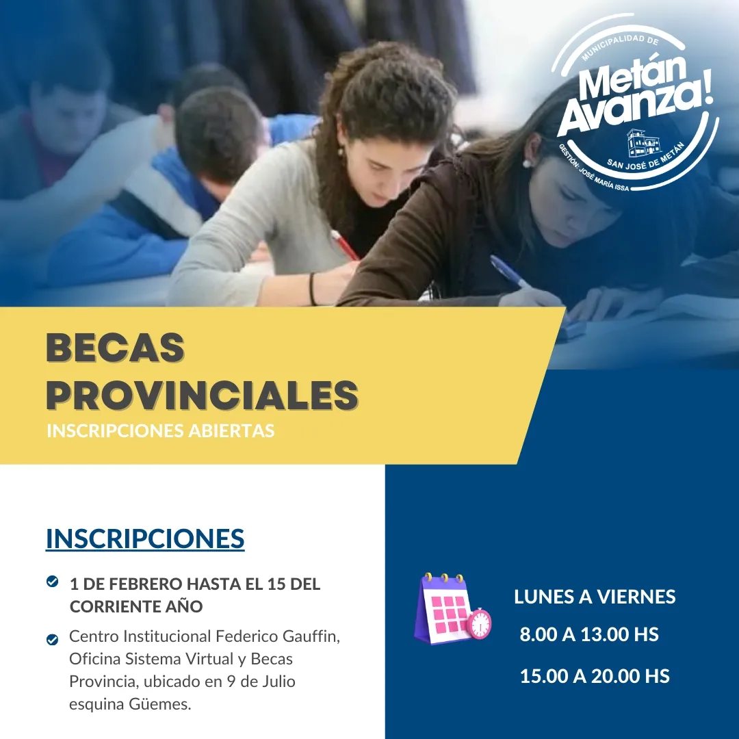 Metán: Abiertas las inscripciones para becas provinciales
