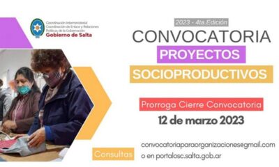 Las Organizaciones interesadas podrán postularse hasta el 12 de marzo, a través de la web portalosc.salta.gob.ar. La 4° edición de Convocatoria de Proyectos Socioproductivos se extiende hasta el...