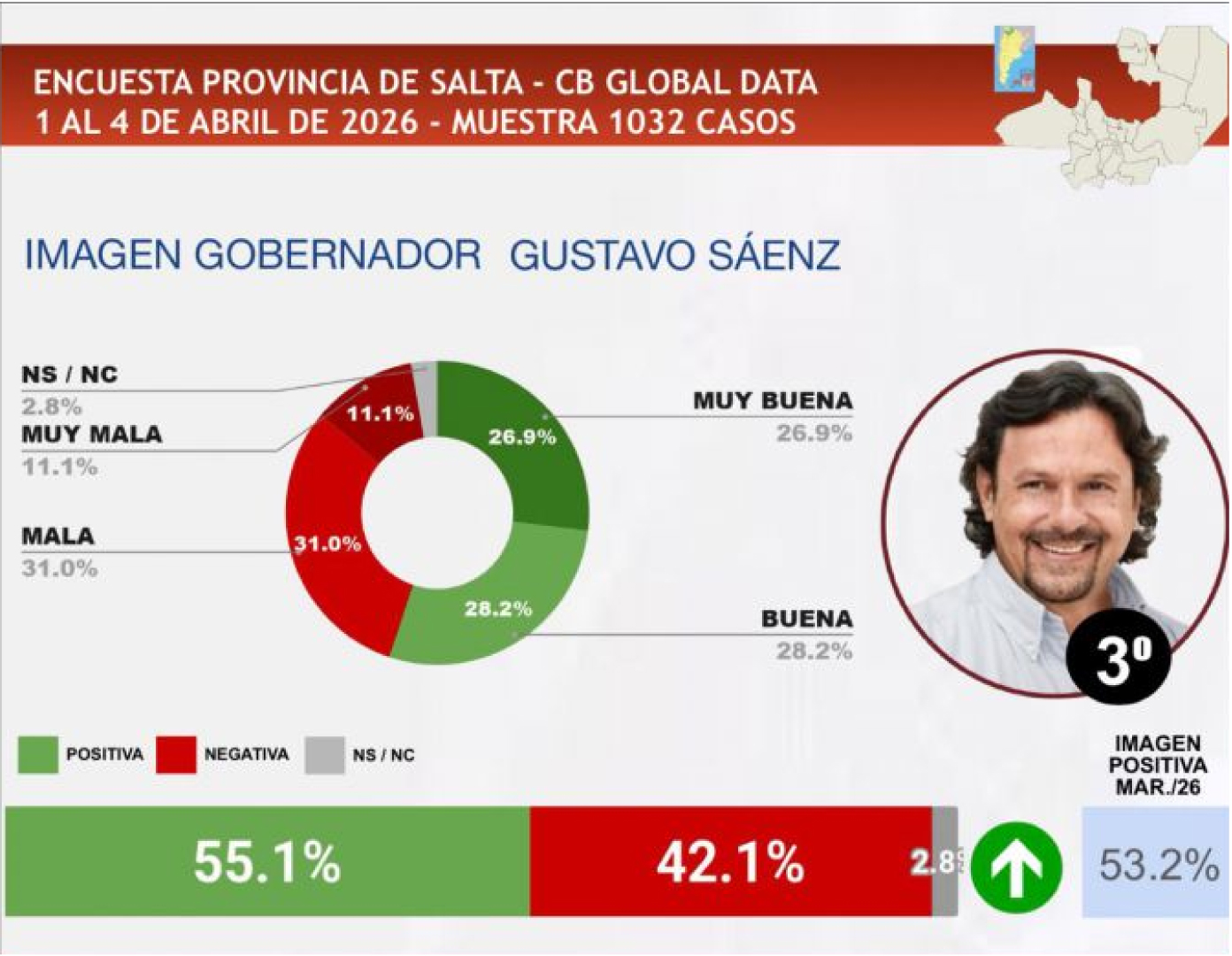 El mandatario salteño escaló hasta el tercer puesto en el último relevamiento de CB Consultora Opinión Pública. En un escenario de saldos positivos para todos los gobernadores del país, Sáenz destaca entre los tres mejores valorados por sus coprovincianos.